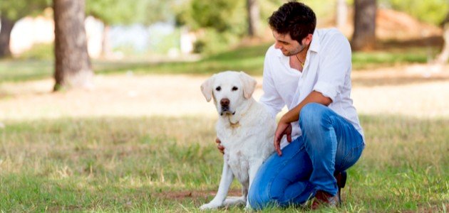 - الوقوف أمام الكلب وأمره بالجلوس.