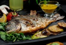 • وضع الجمبري المشوي في طبق التقديم ورشّه بالتتبيلة ثم تقديمه جاهزاً.