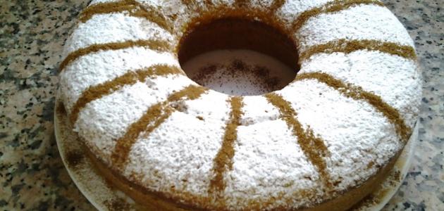 - نسكب الخليط في صينيّة الفرن المدهونة والمرشوشة بالدقيق، وندخلها الفرن مدة أربعين دقيقة.