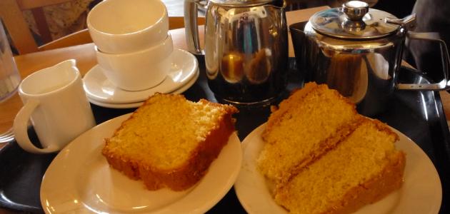 • إخراج القالب من الفرن، ووضعه في مكان دافئ لمدة ساعة تقريباً، ثم قلبه، ورشه بالسكر البودرة، أو تزينه حسب الرغبة قبل تقديمه.