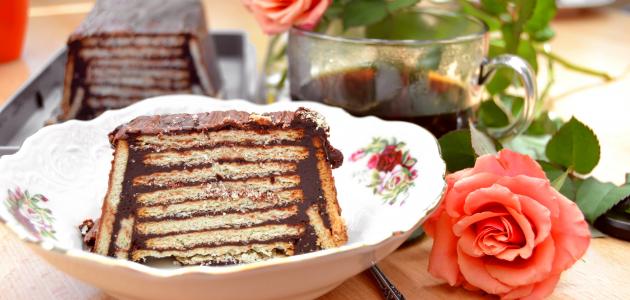 حشْوُ البسكويتِ في كيسِ نايلونٍ كبيرٍ وباستعمالِ النشَّابة أو أداةِ طرقِ اللحم، يُطْرقُ بخفةٍ على البسكويتِ إلى أنْ يتفتتَ ويصبحَ ناعماً بعد ذلك وضعُه في طبقٍ عميقٍ.