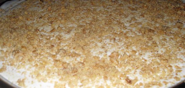 - صب خليط السميد فوق الكنافة، وإدخال القالب إلى الثلاجة لعدة ساعات.