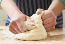 - نطوي أطراف العجين ونغلقها ونغطّيها بشكل محكم، وبعدها ندهن القليل من خليط الماء مع الطحين على الحشوة من الخارج كي تبقى متماسكة.