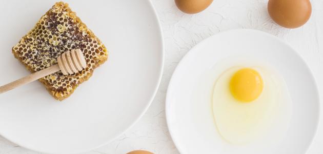 - مزج بياض البيض مع العسل، والخل بشكلٍ جيّد بالملعقة.