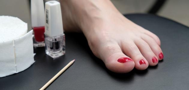 - يُوزَّع المزيج على القدمين الجافتين، والكعبين، وباطن القدمين، مع التركيز على مِنطقة ما بين الأصابع.