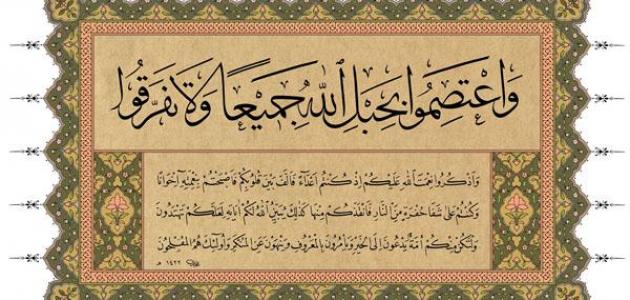- ↑ “تفسير: (واعتصموا بحبل الله جميعا ولا تفرقوا واذكروا نعمت الله عليكم …) “، www.alukah.net، اطّلع عليه بتاريخ 2018-5-24. بتصرّف.