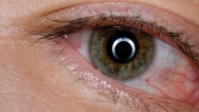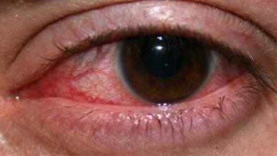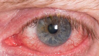- تواجد مخاط حول عين الشخص تبدو على شكل خيوط.