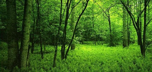 - الغابات: هي مناطق تنمو فيها الأشجار بشكل كثيف. يمكن العثور على الغابات في أي مكان يمكن أن تنمو فيه الأشجار، في مستوى سطح البحر، أو حتى في مستوى مرتفع في الجبال، بالإضافة إلى الغابات المطيرة الاستوائية بالقرب من خط الاستواء، والغابات الشمالية في المناخات الباردة القريبة من الدائرة القطبية الشمالية، والعديد من الأنواع المختلفة من الغابات في جميع أنحاء العالم. ويمكن تصنيف الغابات بناءً على نوع الأشجار فيها إلى غابات متساقطة التي تحتوي على أشجار البلوط والقيقب، والغابات دائمة الخضرة التي تحتوي على أشجار دائمة الخضرة مثل شجر التنوب.