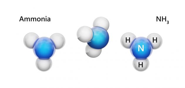 • يبدو شكله الفراغي كهرم ثلاثي، حيث يرتبط النيتروجين مع ثلاث ذرات هيدروجين وزوج من الإلكترونات غير المشاركة .