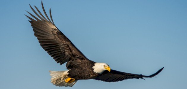 يستطيع طائر العُقاب الأصلع (بالإنجليزية: Bald Eagle) الطيران على ارتفاع 3048 متر، وتصل سرعته إلى (30-35) ميلاً في الساعة، وهو من الطيور التي لديها القدرة على السباحة، وصيد الأسماك، وتتواجد في جميع الولايات المتحدة، ما عدا ولاية هاواي.[٦]