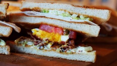 - نحضّر كامل الكميّة بالطريقة نفسها، ومن ثمّ نحضر الخبز ونضع بداخله شرحات الطماطم والبصل والجبنة والكاتشب والمايونيز.