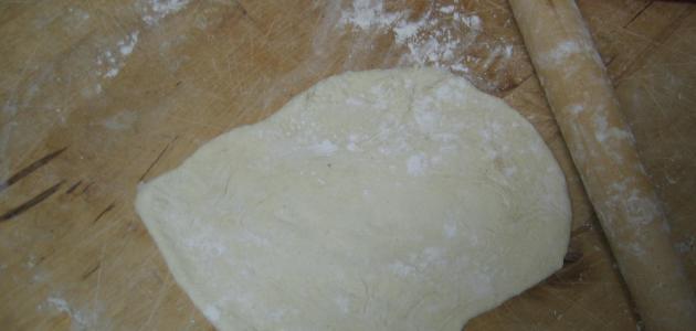 • نضع كميّة من النشا على المنضدة ونباشر برق العجينة بالحجم الذي نريده.