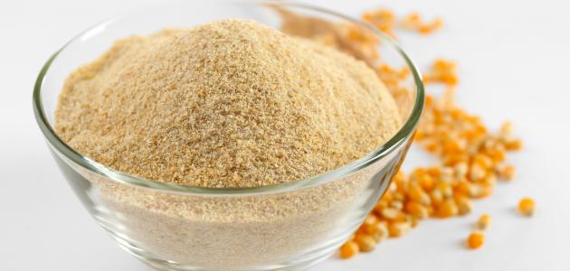 يُنتج دقيق الذرة الصفراء عن طريق طحن حبوب الذرة حتى تتحول إلى مسحوقٍ ناعم، وغنيّ بالبروتين والألياف والنشا،[١] وفيتامين ب6، وفيتامين ب1 المعروف باسم الثيامين (بالإنجليزيّة: Thiamine)، والمنغنيز، والمغنيسيوم، بالإضافة إلى بعض مُضادات الأكسدة كالسيلينيوم، وبعض أنواع الكاروتينات مثل اللوتين (بالإنجليزيّة: Lutein) والزيانثين (بالإنجليزيّة: Zeaxanthin)، التي تُساهم في الحفاظ على صحة العين، وتقليل خطر تعرّضها للإصابة بمرض التنكس البقعي المرتبط بالعمر (بالانجليزيّة: Age-related macular degeneration)، وتقليل خطر التعرض لمشكلة إعتام عدسة العين (بالانجليزيّة: Cataracts) أو ما يُعرف بالماء الأبيض في العين.[٢] كما أنّ اختيار الذرة ومُنتجاتها المصنوعة من الحبوب الكاملة بدلاً من الأطعمة المصنوعة بالدقيق الأبيض، قد يُساهم في الحفاظ على صحة الأمعاء، وتقليل خطر الإصابة بالسرطان، وأمراض القلب، ومرض السكري النوع الثاني،،[٣] ومن الجدير بالذكر أيضاً أنّ الذرة ودقيقها يتميزان عن بقية منتجات الحبوب الأخرى بكونهما من الأطعمة الخالية من الغلوتين بشكلٍ طبيعي، مما قد يُفيد مرضى حساسية الغلوتين الذين يُعانون من ردات فعل حساسية شديدة تجاه إنزيم الغلوتين، ممّا يُسبب لهم عدة مضاعفات صحية.[٤]