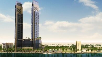 يقع برج الماء في مدنية على الجزيرة التي يحيط بها الماء، ويتكون برج الماء من ثلاث طبقات، حيث يتميز الطابق العلوي بوجود مطعم كبير يطلّ على الكورنيش، كما يمتاز بوجود شرفة تطلّ على المدينة تسمح للسياح بالاستمتاع بمنظر المدينة، ويحتوي على خزّان ماء لتوفير الماء للمدينة.