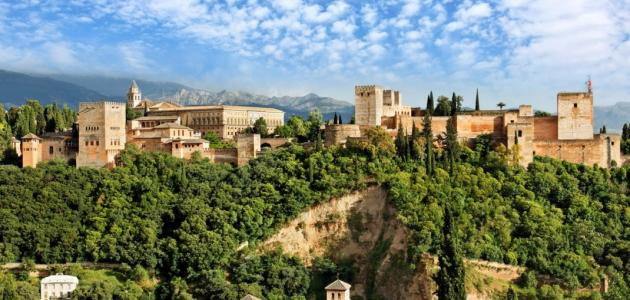 - قصر الحمراء: ويعدّ من أبرز معالم إسبانيا، ويعتبر من أكثر المناطق زيارةً من قبل السياح بالإضافة إلى أنه انضمّ إلى قائمة التراث العالمي بتاريخ 1984م، وقد شُيّد قصر الحمراء من قبل بني الأحمر، ويقع على هضبة صغيرة موجودة على سفوح جبل الثلج في جنوب شرق البلاد على المنطقة الحدودية، ويحتوي القصر على مساكن للحكام، وكذلك على حدائق ذات جمال وبهجة مثل حدائق جنة العريف، وقصور لخلفاء بني الأحمر.