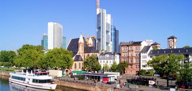 تقع مدينة فرانكفورت في ألمانيا، تحديداً في الجهة الوسطى الغربية منها، وتشرف على ضفاف نهر الماين الواقع في ولاية تسمّى هسن، وتعتبر العاصمة الاقتصاديّة الرسميّة في ألمانيا، نتيجة احتوائها على كبرى الشركات والبنوك إضافةً لبورصة الأوراق المالية، والمقرّ الرئيسي للبنك المركزي الأوروبي، وتقام فيها سنوياً مجموعة من كبرى المعارض.