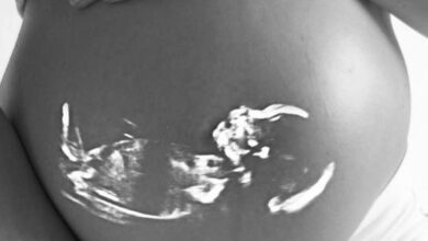 - فقد يصل طول الجنين إلى أربعين سنتيمتراً، ويستطيع أن يتحكم بجفون عينيه وأحياناً قد يتمكن من رؤية ما حوله>