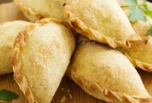 - وضع العجينة الثانية على حشو اللحم والجبن وتثبيت أطراف العجينة مع عجينة الطبقة السفلية.