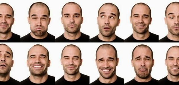 - الحواجب والجبين: حيث يشير ارتفاع الحواجب إلى الدهشة والمفاجأة، بالإضافة إلى الانزعاج أو عدم التصديق، ويشار إلى أنّ عقد الحاجبين يدلّ على الغضب.