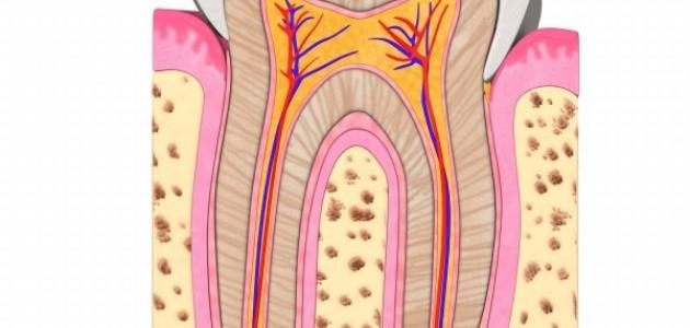 • الجذر: هو الجزء المغمور داخل اللثة، والموصول بعظام الفكّين العلوي، والسفلي.