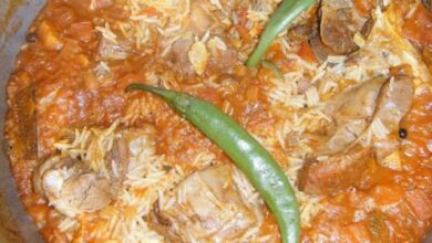 • اسكبي الهريس في طبق التقديم، مع وضع طبق صغير الحجم في الوسط به القليل من السمن المذاب.