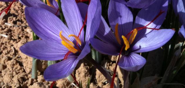 يُعدّ الزعفران من التوابل التي تُستخرج من زهور (crocus sativus Linné)، وتنمو هذه الزهور لمدة ثلاثة أسابيع في الفترة الممتدة ما بين شهري تشرين أول وتشرين ثاني، حيث تُنتج وصمات باللون الأحمر الداكن شبيهة بالخيوط، ويتم قطف هذه الوصوم باليد ثم تُجفف لتًُصبح على شكل توابل الزعفران، وينمو نبات الزعفران في أجزاء من قارة أوروبا وفي دول الشرق الأوسط، وتنتشر بكثرة في كل من اليونان وإيران والهند،[١]، ولإنتاج 450 غراماً من الزعفران يلزم استهلاك ما يقارب 75 الف زهرة، ويُزرع الزعفران بكميات كبيرة ويُحصد باليد فقط، لهذا يعتبر من أغلى التوابل في العالم،[٢]، والجدير بالذكر أن نبات الزعفران ينمو بطول يتراوح من عشرين إلى ثلاثين سنتيمتراً، وتبدأ النبتة بإنتاج الزهور بعد مرور ثلاث سنوات على زراعتها حيث تحمل كل نبتة ما يقارب ثلاث زهور أو أربعة، وكل زهرة تضم ثلاث وصمات.[١]
