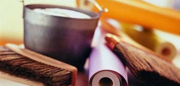 • الأدوات التي تستخدم في تجهيز الحائط؛ وهي: ورق الصنفرة، ومعجون لملء فجوات الحائط، وسكين المعجون.