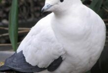 شكل الطير مقوّساً بدءاً من مؤخرة الرأس وصولاً إلى نهاية المنقار، ويقف بشكل مستكين رافعاً رأسه وبارزاً صدره، وعنقه قصيرة تتناسب مع الكتفين، ولون المنقار رفيع وأسود، وفكّاه قويان ومستقيما الحوافّ حيث ينطبقان على بعضهما تماماً، ولون كشاكيشه أبيض ناعم الملمس ودقيق ويأخذ شكل حرف الـ V، ويزداد نموّ هذه الكشاكيش كلّها تقدّم سن الطائر.