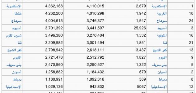 محافظات مصر بالترتيب