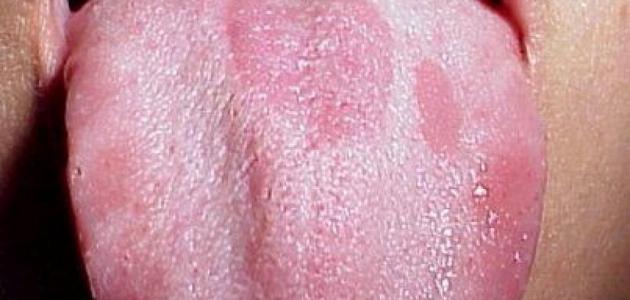 • ظهور طفح أبيض في بطانة الفم وعلى اللسان.