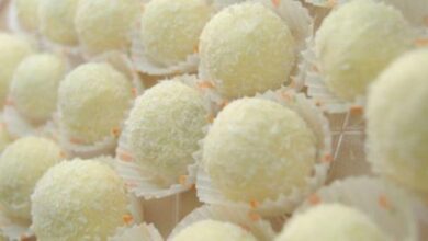 • تشكيل العجينة إلى كرات صغيرة، وحشو كل كرة بمكعب من جبنة الحلوم، ثم تركها حتى تختمر مدة سبع دقائق إضافية.
