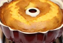 - نضع مزيج الكيك في الصينية، ونخبزه في فرنٍ مسخّنٍ مسبقاً على حرارة مئة وتسعين درجةً مئوية مدّة عشر دقائق.