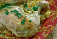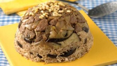 • نرفع القدر عن النار، ثمّ نقلبه على صينية كبيرة ونقدّمه إلى جانب السلطة والزبادي.