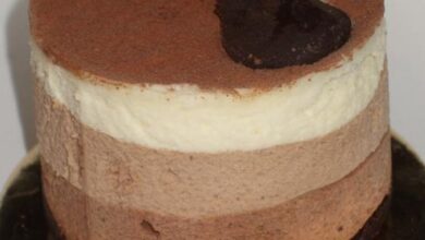 - أحضري وعاءً وضعي فيه الزّبدة والسّكر البنيّ، واسكبي المزيج في الصّينيّة ورشّيها بكميّة الجوز المفروم.