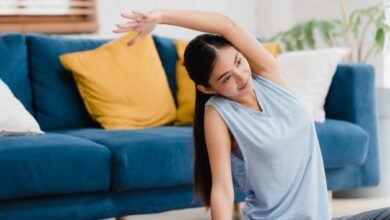 • تمرين تمديد الجسم، والذي يتم من خلال مد الذراعين بشكل مستوٍ ومشدود إلى الأمام، وبشكل متوازٍ، ومن ثم الشروع في تحريك الجزء العلوي من الجسم إلى جهة اليمين تارة، وإلى جهة اليسار تارة أخرى مع الحرص على الحفاظ على وضعية الذراعين الموازية والممدودة، ومن ثم النزول إلى الأسفل، والوقوف، حيث يجب تكرار هذا التمرين ثلاثين مرة في اليوم الواحد.