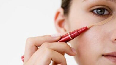 - يدمج الكونسيلر بشكلٍ جيدٍ باستخدام إسفنجة الدمج النظيفة.