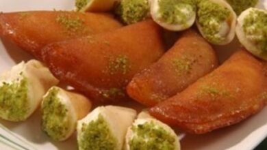 - شرِّبي خبز التوست الساخن بالقطر البارد الموجود لديك، واتركيها جانباً.
