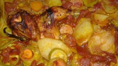 • نغلف الصينية بورق الألمنيوم، ونضعها في الفرن على درجة حرارة 180 لمدة ساعة وربع.