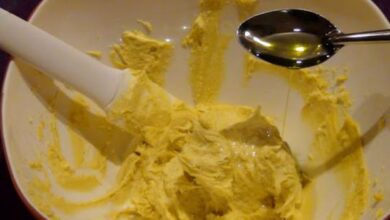 • يُضاف دقيق الشوفان ويُمزَج بالحليب أو الماء، ويُقلَّب؛ للحصول على مزيجٍ ناعمٍ أشبه بالعجينة.