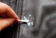 - الكيّ بعناية: توضع المكواة لحين تدفئتها، ثمّ توضع قطعة من القطن أو الكتّان فوق اللباس الجلدي، ويُضغط عليه بالمكواة برفق لعدّة ثوانٍ.
