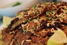 • سلق كمية اللحم في الماء، والتخلص من الرغوة على الوجة، وتضاف إليها كمية البهارات من القرفة والهيل وورق الغار، وتترك على النار الهادئة لتغلي لمدة لا تقل عن ساعة ونصف.